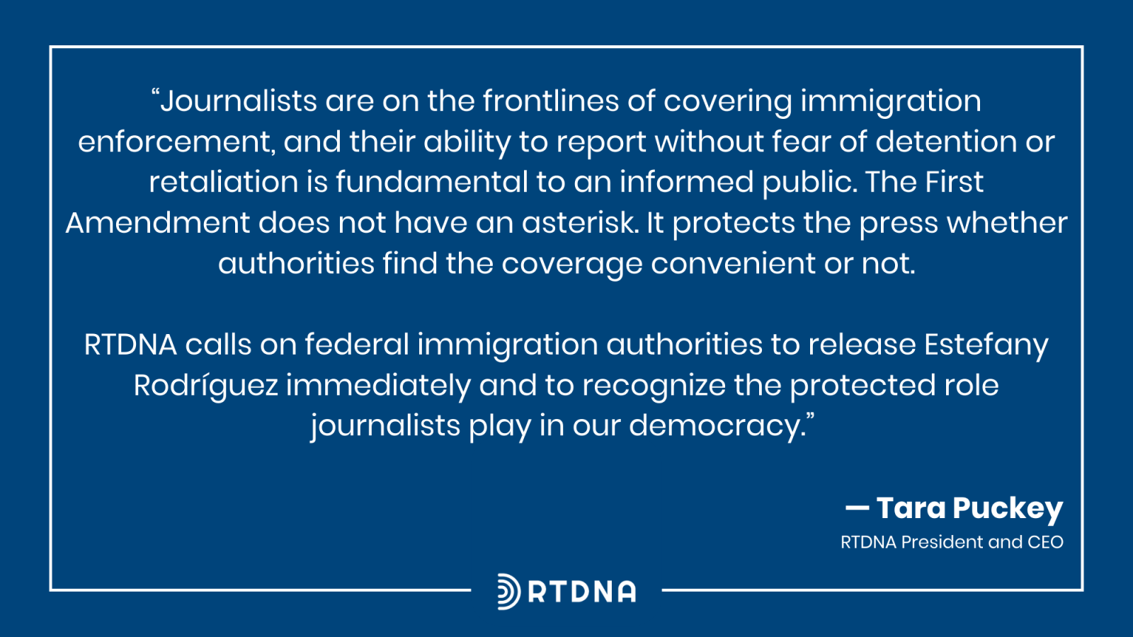 We, a coalition of 41 civil-society and press-freedom organizations condemn the arrest and detention of Nashville journalist Estefany Rodriguez by U.S. Immigration and Customs Enforcement (ICE). We urge ICE to release her immediately.